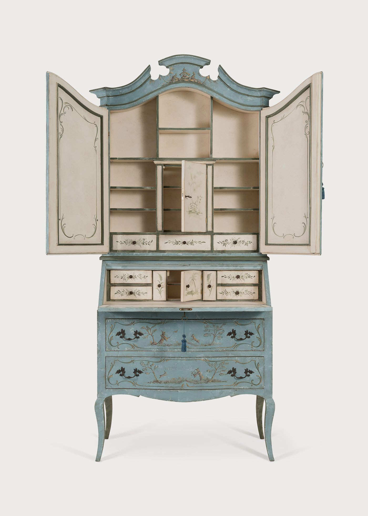Our collection of armoires and secretaries is a beautiful combination of function and fine art. Whether for storing clothing, displaying fine China or hiding a TV, these pieces can do it all while adding a stylish touch to any space. Customizable in size, color, finish and decoration.
